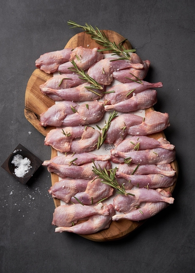 Heirloom Spanish Quail. Corn-free. Air-chilled for purity and tenderness.
